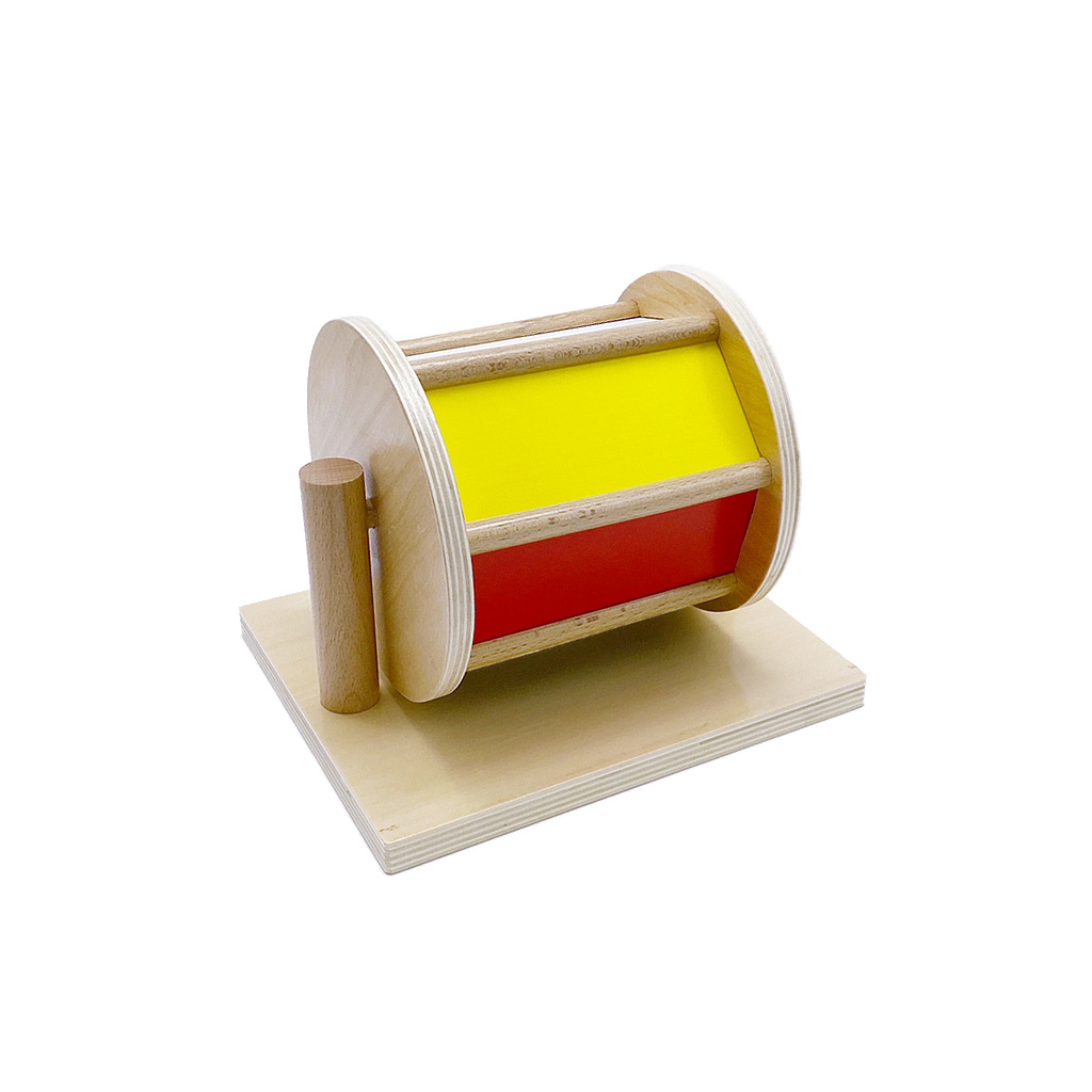 Được thiết kế để trẻ có thể xoay dễ dàng trống với sáu màu khác nhau để hấp dẫn trẻ. Hoạt động giúp trẻ phát triển cơ cổ tay và cánh tay, và khả năng phối hợp cử động tay – mắt.
